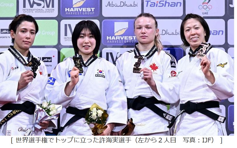 女子柔道国家代表の在日3世、許海実選手(慶北体育会)が韓国選手としては6年ぶりに世界選手権大会のトップに輝いた。