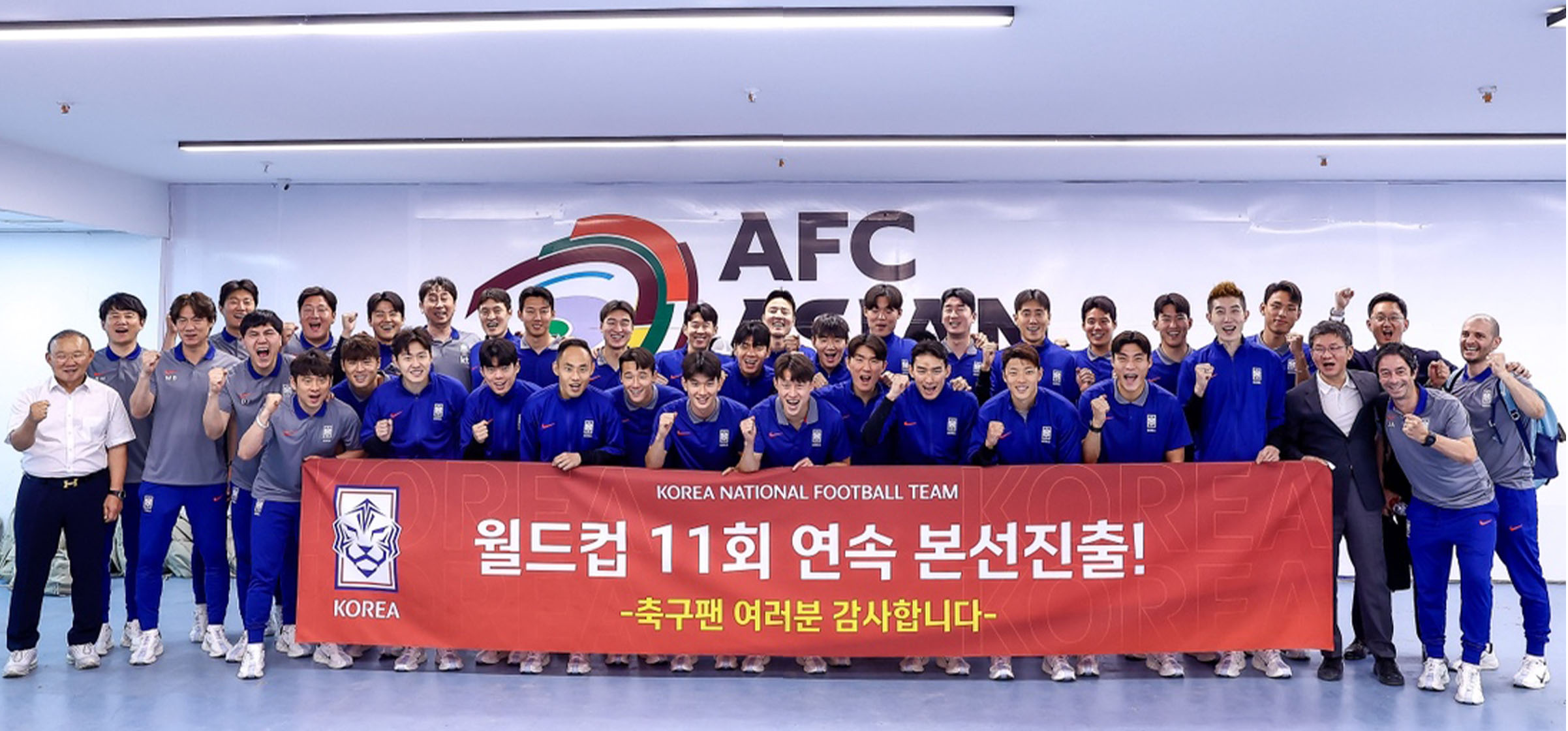 1986年のメキシコ大会から11回連続でW杯出場を決め喜び合う韓国代表