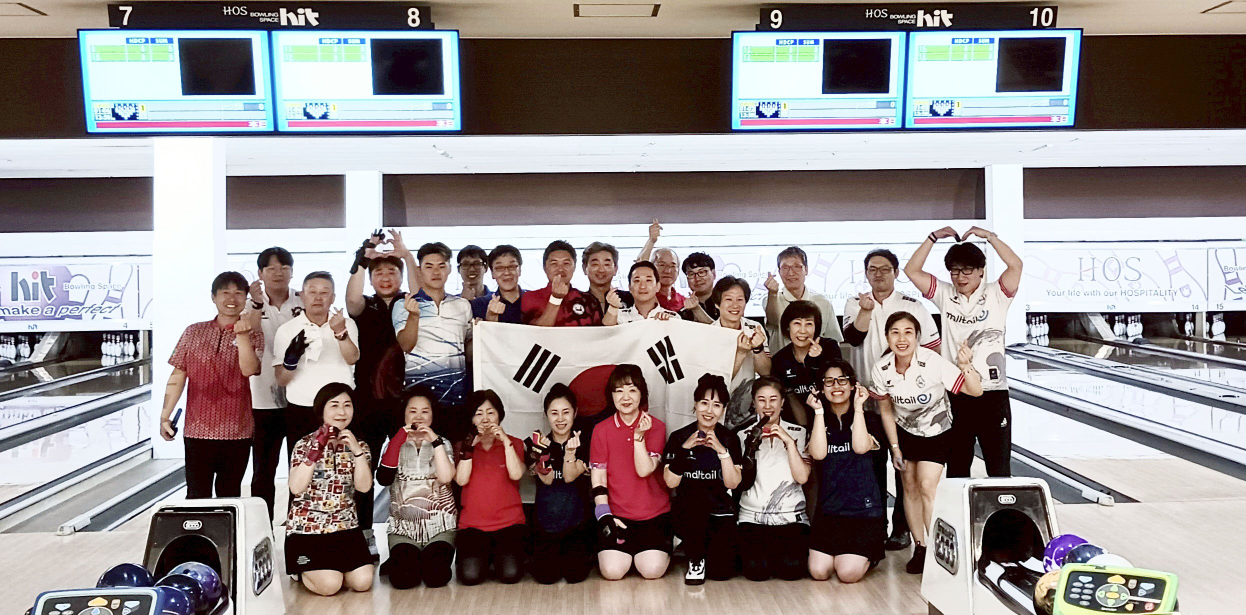 競技を前に記念撮影するボウラーたち